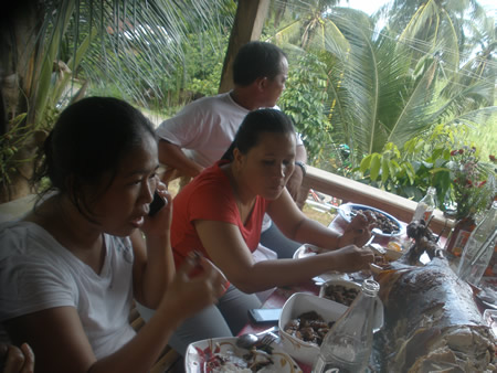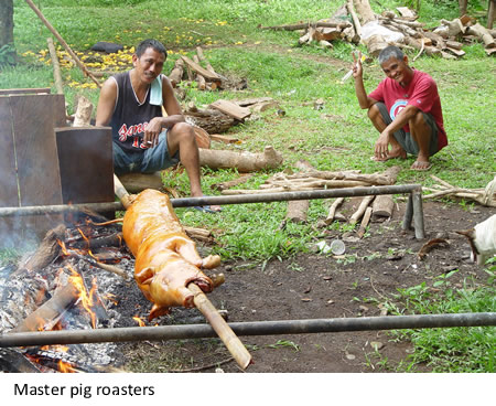 In addition to the fruits we also have a small piggery where we raise our own pigs for special occasions and feasts. Our cooks are experts at roasting pigs by an open fire until they are golden brown.